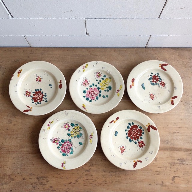 送料一律 1,000円 (沖縄北海道は2,900円) 商品名:図変わり小皿 5枚揃 size 直径10.5 高さ1 ㎝ 程度 商品説明:お花が描かれた貫入入りの小皿です。 食器としてはもちろんですがアクセサリートレイとしてもお洒落です○ ※当店は古物、アンティークを中心に販売しております。 清掃やメンテナンスは出来る限り致しておりますが、 小傷や取りきれない汚れがあるものもございます。 古道具、アンティーク品の味、雰囲気をご理解の上で ご検討をお願いいたします。