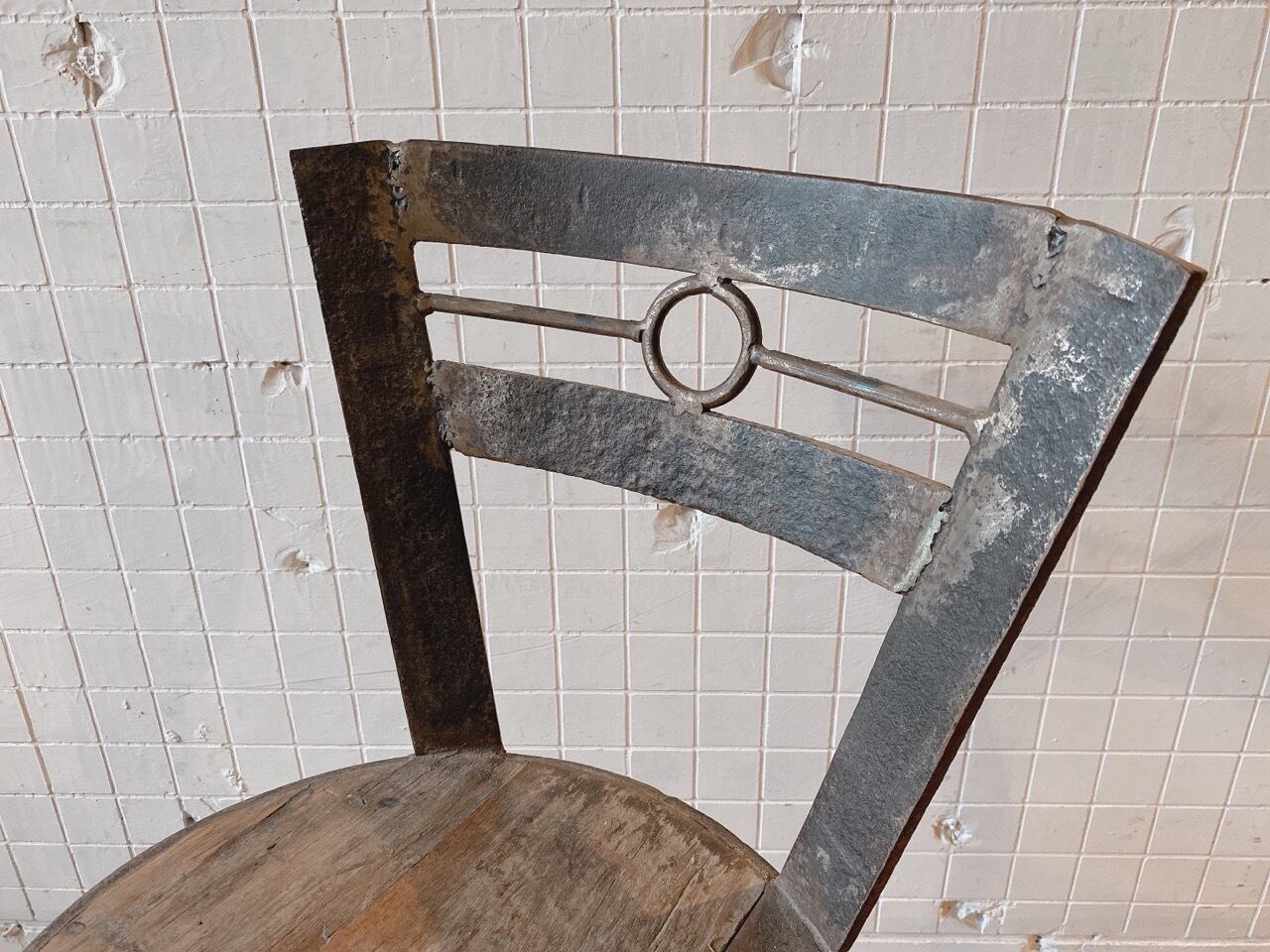 商品説明:アイアン製の回転椅子、座面はチーク材を使用しておりずっしりと重厚感があるインダストリアルなチェア。