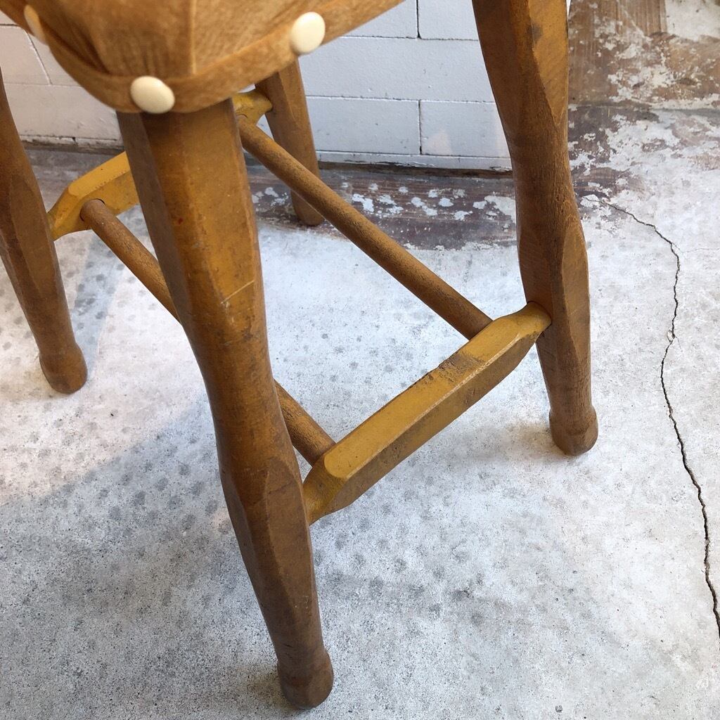 落ち着いた黄色の座面と、味わいある木の質感が素敵です。